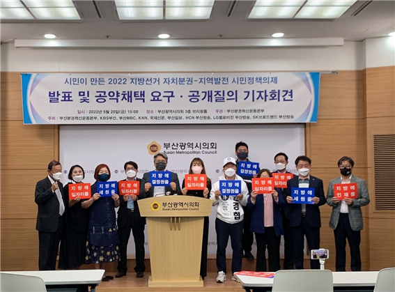 (에듀온라이프뉴스)조한성= 부산분권혁신운동본부(상임대표 : 황한식 부산대 명예교수)는 20일 부산시의회에서 ‘시민이 제안하는 2022 지방선거 12대 시민 정책의제’를 발표하고 공약채택을 요구하는 기자회견을…