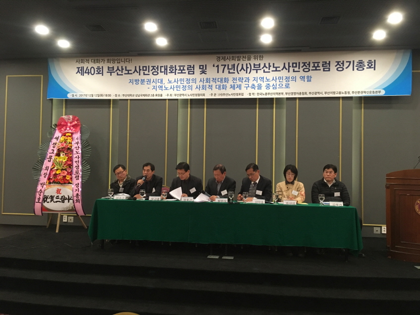 △부산광역시 노사민정협의회와 (사)부산노사민정 포럼, 12. 12. 18:00 부산대 상남국제회관 2층 효원홀에서 ‘지지방분권시대, 노사민정의 사회적 대화 전략과 지역 노사민정의 역할–지역 노사민정 사회적 대화 체제 구축…