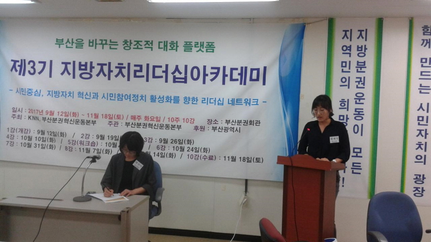 (에듀온라이프뉴스)편집부=제3기 지방자치리더십아카데미 두 번째 시간이 9월 19일 부산분권회관에서 진행되었다.분권사회 지역발전전략과 시민주체 형성의 과제라는 주제로 진행된 이번 시간에는 지방분권 혁신과 시민참…