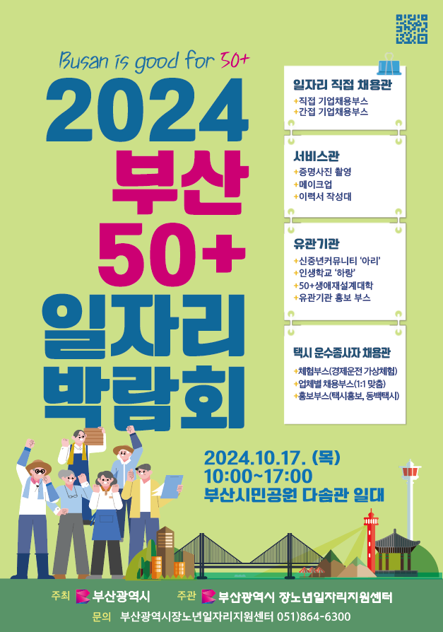 (에듀온라이프뉴스)윤가을=부산시는 오는 17일 부산시민공원 다솜관에서 '2024년 부산 50+ 일자리 박람회'를 개최한다고 밝혔다. 이번 박람회는 50세 이상 구직자와 시민들이 참여할 수 있는 행사로, 오전 10시부터 오후 5시까…