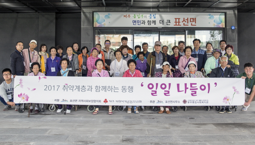 (에듀온라이프뉴스)임한순,편집부=표선면사무소, 동부종합사회복지관, 표선면지역사회보장협의체는 지난 12일 거동이 불편한 어르신과 장애인을 위해 ‘2017 취약계층과 함께하는 동행, 일일나들이’ 행사를 개…