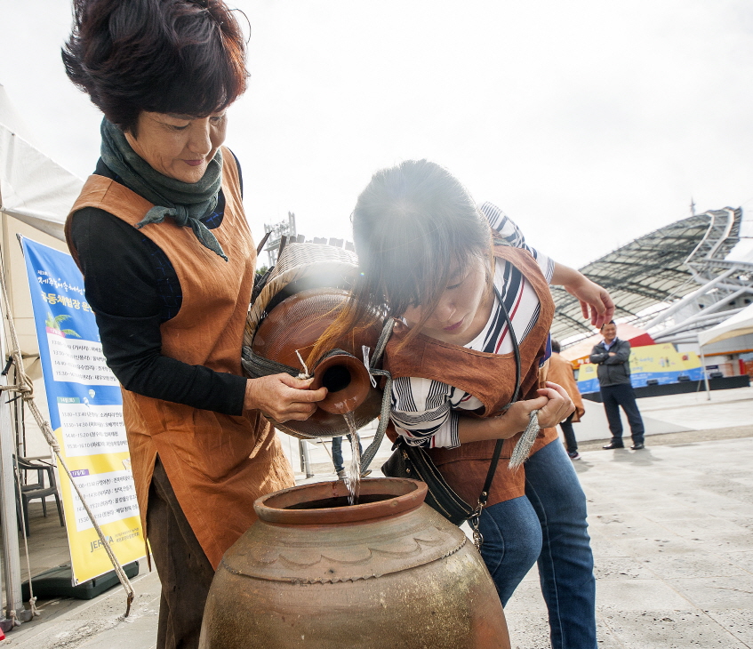 ▶ 정영헌 성산읍장과 신풍리 어멍아방잔치마을 관계자들 (에듀온라이프뉴스) 임한순, 편집부=제3회 제주농어촌 체험 페스티벌이 10월13일부터 15일까지 3일간 서귀포 월드컵경기장 광장에서 펼쳐지고 있다.제주도가 주최하…
