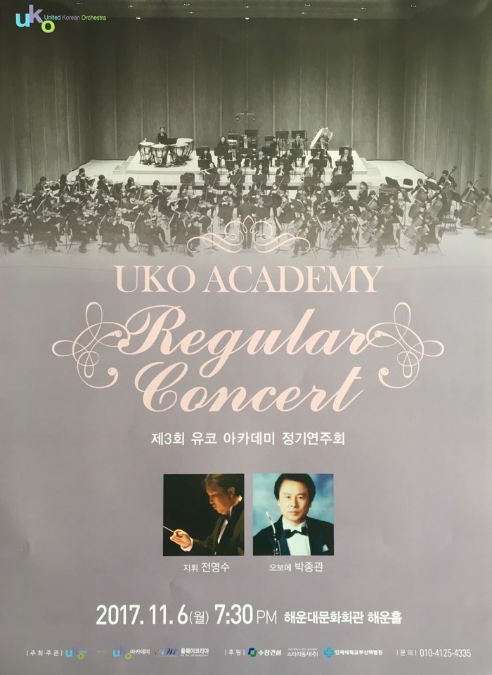 (에듀온라이프뉴스) 반현우,편집부=오는 11월 6일(월요일)에 유코 아카데미 오케스트라의 제3회 정기연주회가 열린다. 클래식과 팝, 영화음악등 가을 밤의 정취를 느끼며 부담없이 즐길 수 있는 프로그램으로 이…